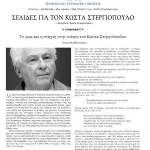 Από τις εκδόσεις Γκοβόστη κυκλοφορεί το τεύχος 22 του περιοδικού Τα Ποιητικά, με σελίδες...