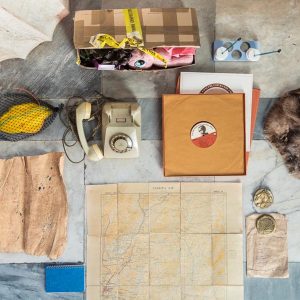Χάρτες, ήχοι, τηλέφωνα, φωτογραφίες, υφάσματα, σκουπίδια και διάφορα άλλα αντικείμενα συνθέτουν μια συλλογή βιβλιοθήκης...