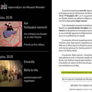 Το μουσικό συγκρότημα encardia παρουσιάζει ένα μοναδικό διήμερο μουσικών εκδηλώσεων στο Μουσείο Μπενάκη (Πειραιώς...