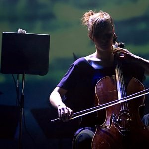 Η τσελίστρια, συνθέτης και ερμηνεύτρια Hildur Gudnadóttir, με τον αχώριστο συνεργό της …Ómar –...