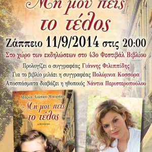 Παρουσίαση βιβλίου: Μη μου πεις το τέλος – Μαρία Λιάσκα-Μαυράκη