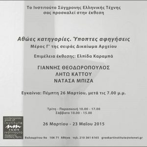 Το Ινστιτούτο Σύγχρονης Ελληνικής Τέχνης εγκαινιάζει την Πέμπτη 21 Ιανουαρίου 2016 την ομαδική έκθεση...