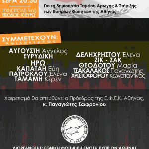 Η Εθνική Φοιτητική Ένωση Κυπρίων Αθήνας διοργανώνει Συναυλία Αλληλεγγύης για την Κύπρο, την Πέμπτη...