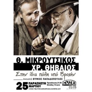 Club του Μύλου: Θάνος Μικρούτσικος και Χρήστος Θηβαίος υπό βροχήν