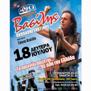 Η προγραμματισμένη για τη Δευτέρα 18 Ιουλίου συναυλία του Βασίλη Παπακωνσταντίνου στη Βαβυλωνία του...