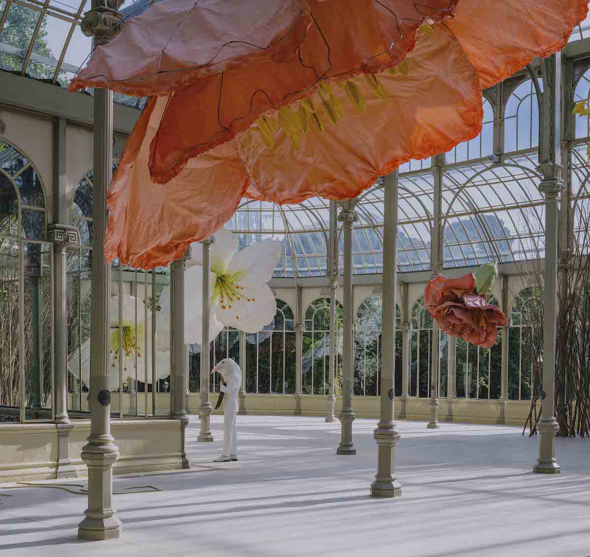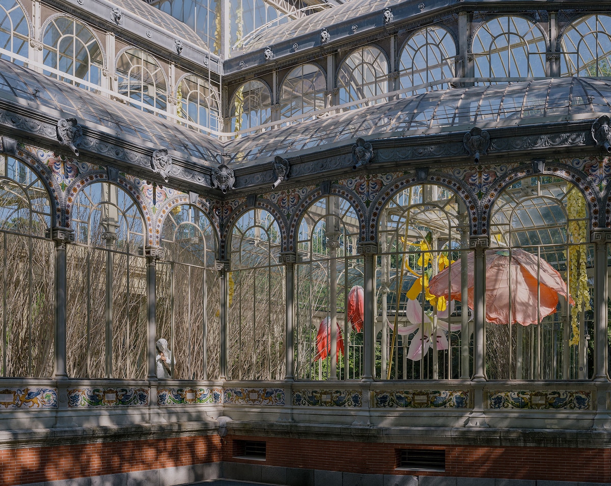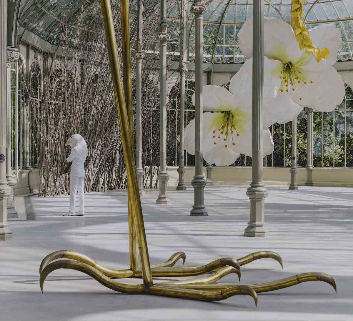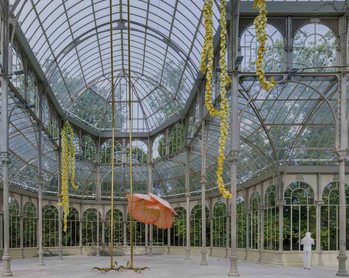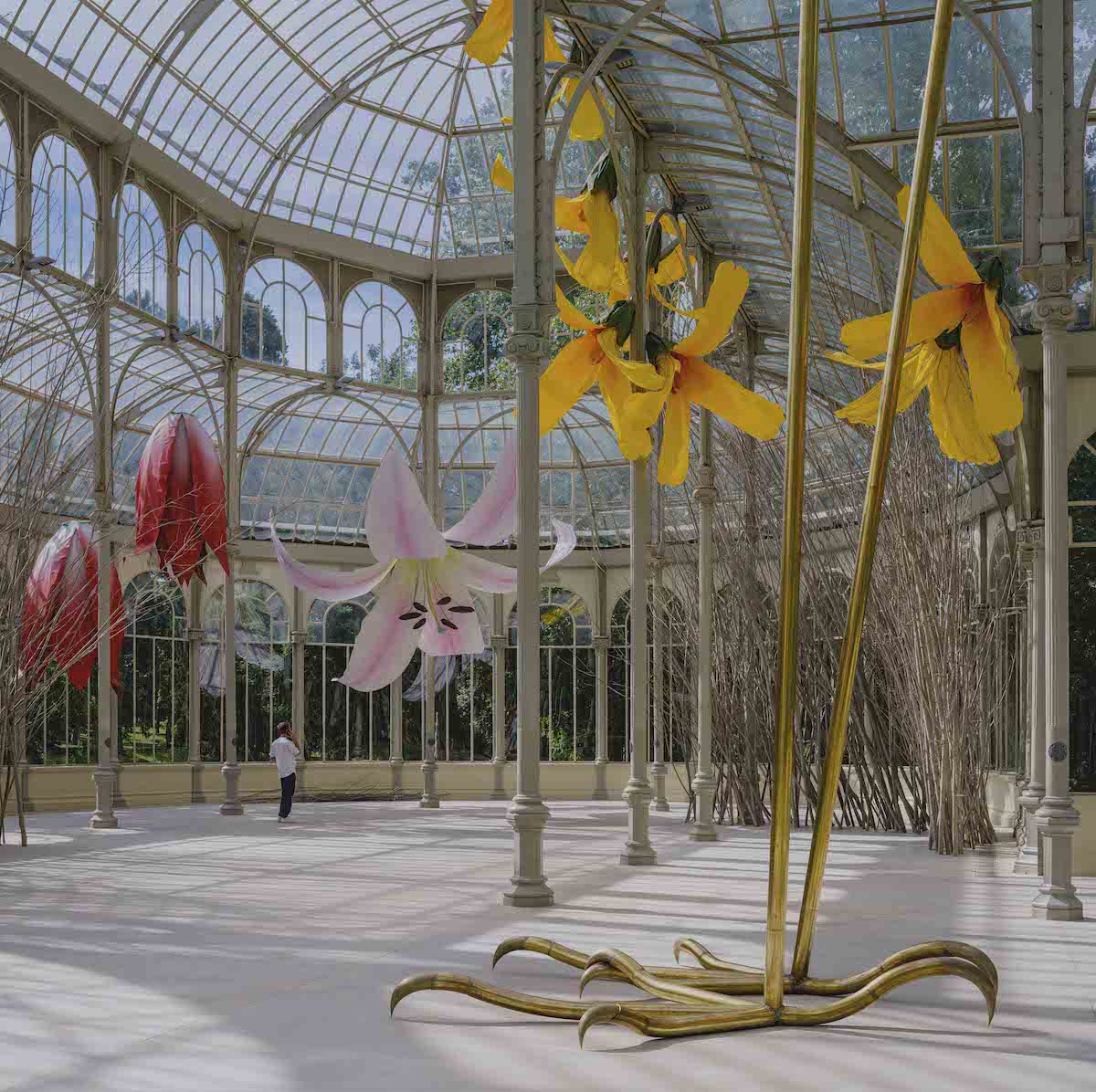 O καλλιτέχνης Petrit Halilaj από το Κόσοβο δημιούργησε μία βαθιά προσωπική, αλλά και φανταστική εγκατάσταση για την πρώτη του ατομική έκθεση στο Palacio de Cristal του Μουσείου Reina Sofia, στη Μαδρίτη. Ο Haliliaj εμπνεύστηκε την εγκατάσταση από τις ιδιαίτερες τελετές ερωτοτροπίας πτηνών. Οι πτιλονορρυγχίδες είναι ένας είδος πτηνών που τα αρσενικά «φιλοτεχνούν» περίτεχνα διακοσμημένες φωλιές, προσπαθώντας να προσελκύσουν τους ερωτικούς συντρόφους τους. Έτσι, και εκείνος μέσα στο Palacio de Cristal δημιούργησε μία προσωπική μεταφορική φωλιά, πλημμυρισμένη με τεράστια άνθη.