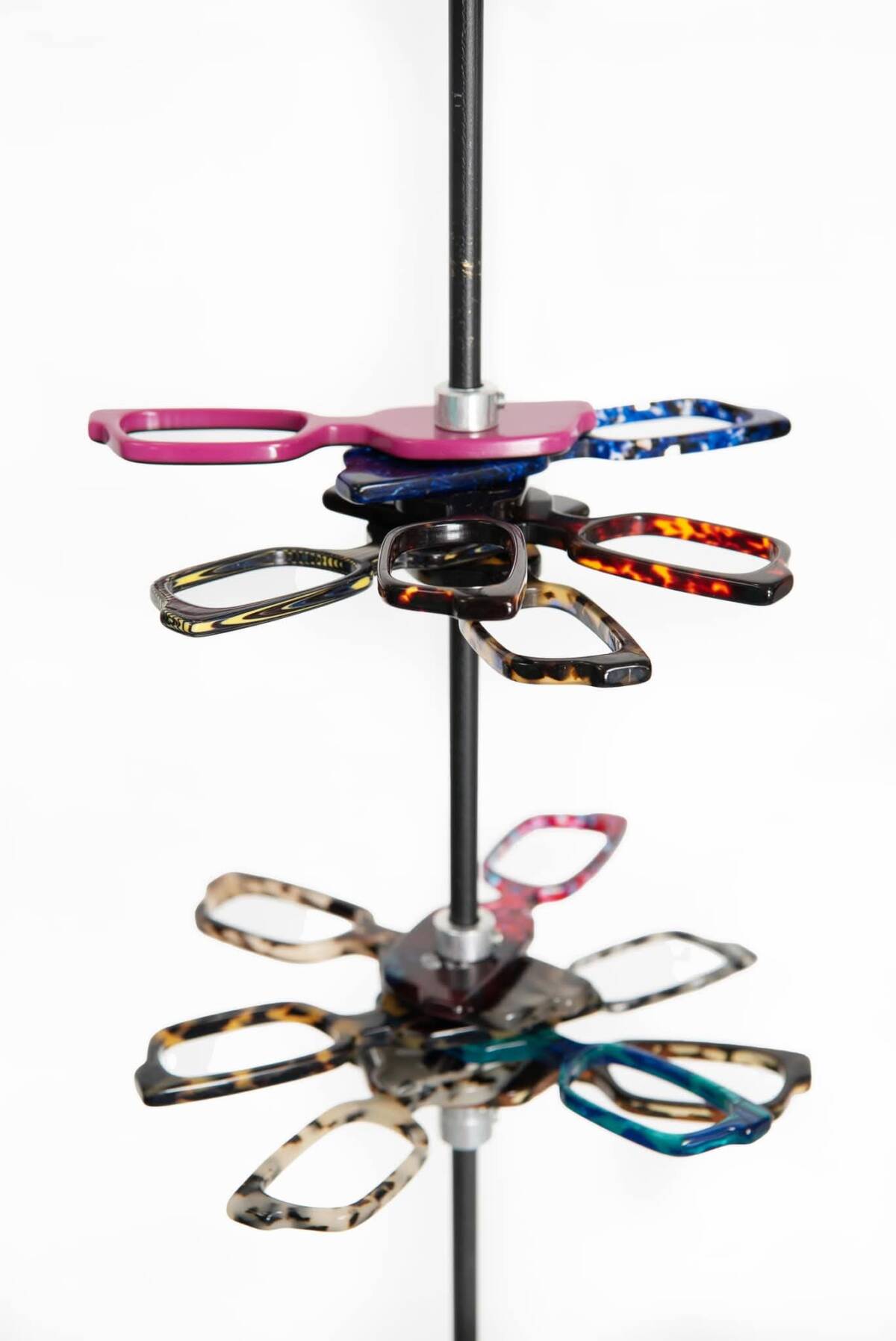 Ακούραστος τεχνίτης και με αστείρευτη έμπνευση, ο Θανάσης Μπίρλης ανανεώνει συνεχώς τα υλικά του και τον τρόπο χρήσης τους ώστε να επιτύχει το καλύτερο δυνατό αποτέλεσμα για τον ίδιο. Ορείχαλκος, σίδερο, πλαστικό, βραχίονες, δείγματα για την κατασκευή γυαλιών οράσεως, όλα του χρησιμεύουν για να φτιάξει έργα τέχνης βιομηχανικής αισθητικής και ιδιαίτερης ομορφιάς.