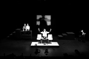 Cul. N.: Ποια ήταν η διαδικασία που ακολουθήσατε, από σκηνοθετικής πλευράς, για να βρουν τα κείμενα τον δρόμο για την σκηνή; Πως μετατρέψατε το λόγο –συνεντεύξεις Ν. Παναγιωτόπουλου και δοκίμιο Π. Λαφάργκ- σε σκηνικές εικόνες;