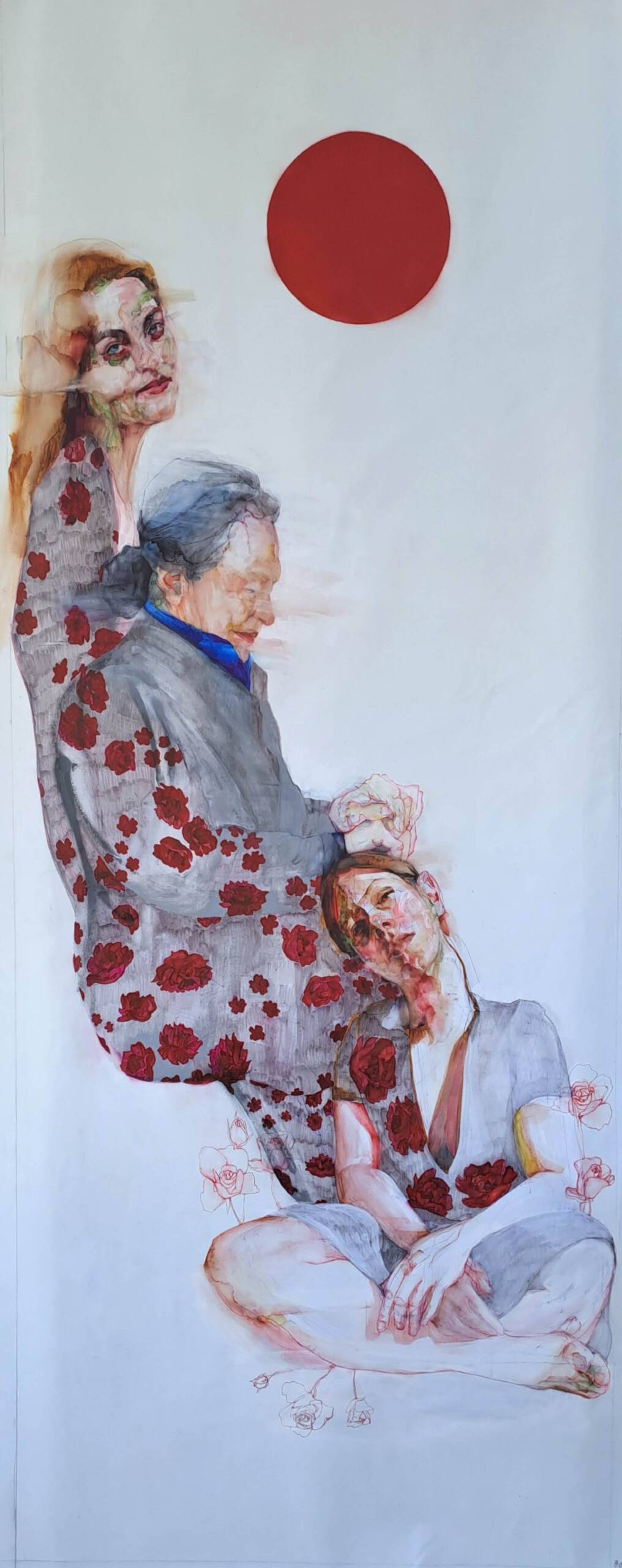 Η εικαστικός Τίνα Κόντογλη, γράφει για το Once Upon A Time: “ Το μεγαλύτερο μέρος των έργων μου επικεντρώνεται σε ανθρώπους και στοιχεία της καθημερινής ζωής (όπως μπορεί να είναι ένα λουλούδι, ένα κτίριο, ζώο, δέντρο ή και άλλα). Αυτό που με ενδιαφέρει στην απεικόνιση των ανθρώπων είναι η αποτύπωση των εκφράσεών τους ως μέρος του είναι, ‘σκάβοντας’ μέσα στα πρόσωπα και ενσωματώνοντας χρώματα άλλοτε προσθέτοντας και άλλοτε αφαιρώντας καθόλη τη διάρκεια.