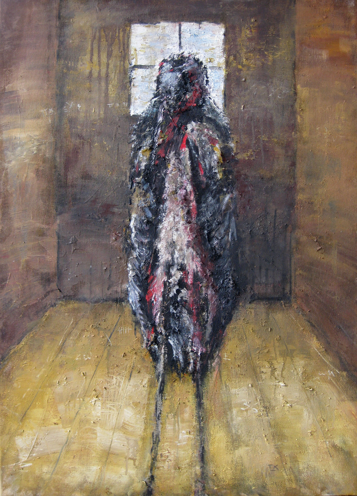 Η ύλη καθορίζει τη στάση και την αναπνοή των σωμάτων. Οι μορφές είναι καμπτόμενες και συγκρατημένες, τα πρόσωπα υποχωρούν, και αυτό που παραμένει είναι το ίχνος της εμπειρίας. Το χρώμα εγγράφεται σαν κάτι που έχει ήδη συμβεί και συνεχίζει να επιδρά. Ο χρόνος δεν απεικονίζεται· κατοικεί στην επιφάνεια.