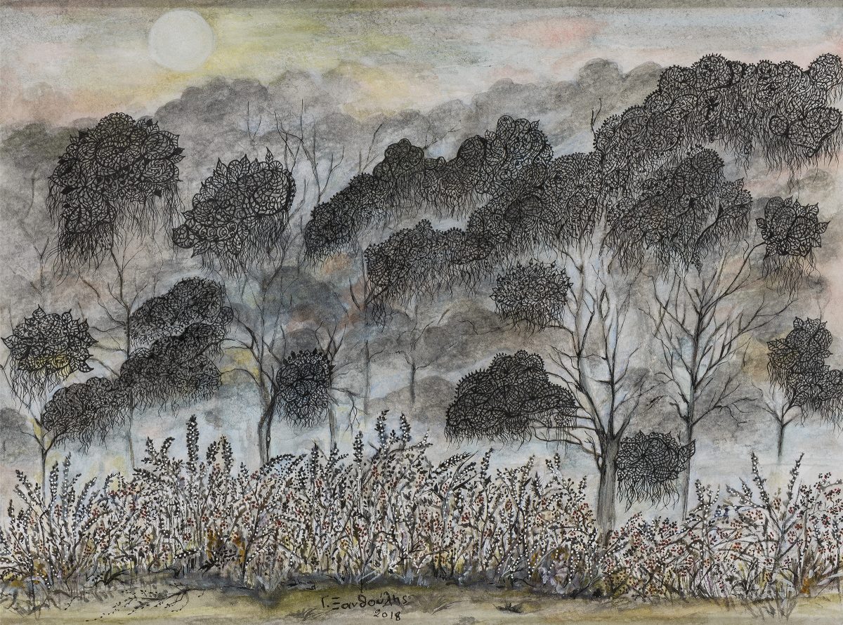 Οι ιδέες έρχονται από μικροπράγματα συνήθως, που σιγά σιγά παίρνουν διαστάσεις παραμυθιού και μιας αμφιθυμίας, που την χαρακτηρίζω σαν ύποπτη ενηλικίωση ενός αενάως ανήλικου. Καταθέτω λοιπόν παρορμητικά τις γραμμές, τα σχέδια, τις μπογιές κι όλα τα σχετικά σαν μέρος μιας αυτοσχέδιας κούρας, που, αν μη τι άλλο, στο τέλος μου αφήνει την ικανοποίηση μιας πολύ προσωπικής μοναχικής τελετής χωρίς άλλους καλεσμένους. Κι όμως, μέσα σε τρία χρόνια από την προηγούμενη «ανεπανόρθωτη» έκθεση των ζωγραφιών μου, μαζεύτηκε αρκετό τελετουργικό υλικό.