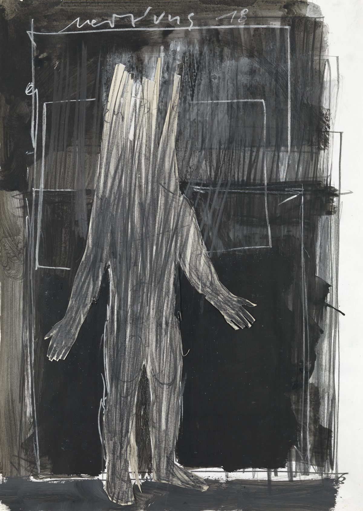 Πρόκειται για είκοσι τέσσερις μεγάλου μεγέθους πίνακες της τελευταίας (2017-2019) διετίας, οι οποίοι συνοδεύονται από τέσσερις παλαιότερους μαζί με σειρά 85 σχεδίων, που αποδεικνύουν πως η ίδια θεματική απασχολεί τον καλλιτέχνη, με διαφορετικό κάθε φορά αποτέλεσμα, τα τελευταία τριάντα χρόνια.