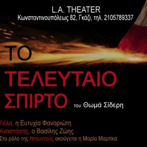 Το Life n’ Art Theater παρουσιάζει από τη Δευτέρα 3 Νοεμβρίου 2014 την θεατρική παράσταση «Το Τελευταίο Σπίρτο» του Θωμά Σίδερη σε σκηνοθεσία του Σάββα Πασχαλίδη. Το έργο στηρίζεται στο μυθιστόρημα του Θωμά Σίδερη «Το μεσοφόρι που χόρευε » που είναι υπό έκδοση και μας αφηγείται την ιστορία μιας πόρνης, της Λέλας.