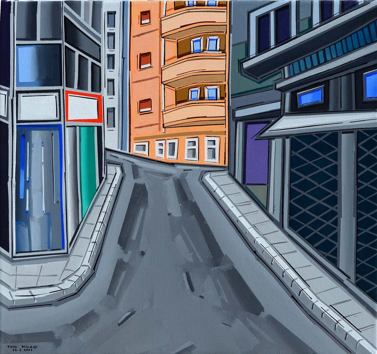Τα τελευταία χρόνια αντικείμενο της δουλειάς μου έχει γίνει η περιοχή πέριξ της πλατείας Κολιάτσου, την οποία παρατηρώ και με ενδιαφέρει να καταγράψω την πολυπλοκότητα των χρωμάτων της και να την αποτυπώσω στα έργα μου.