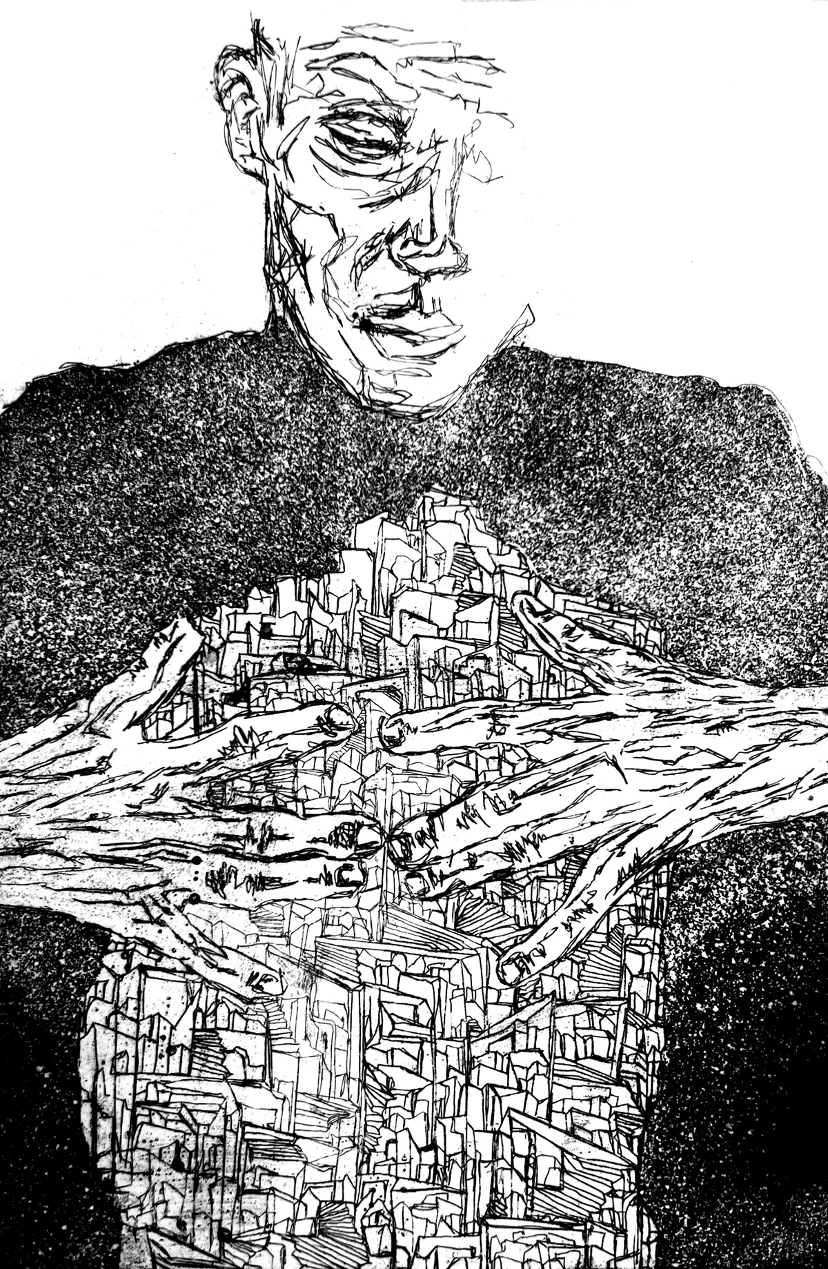 Από τα διερευνητικά βλέμματα, το ερωτικό χάδι και το τρυφερό συναπάντημα παλαιότερων έργων, η καλλιτέχνις περνά σε σώματα αγωνιούντα και χώρους που κραυγάζουν. Μέσα από ένα πολυσυλλεκτικό βλέμμα και μια λεπτομερειακή χαρακτική γραφή, ο άνθρωπος αποτυπώνεται ως κάποιος που απελπίζεται, φοβάται και βασανίζεται, αλλά ταυτόχρονα αγωνίζεται και ελπίζει. Παράλληλα, εμφανίζεται ως οικολογικός καταστροφέας μέσα από το θλιμμένο βλέμμα των ζώων, ενδεής και αποξενωμένος.