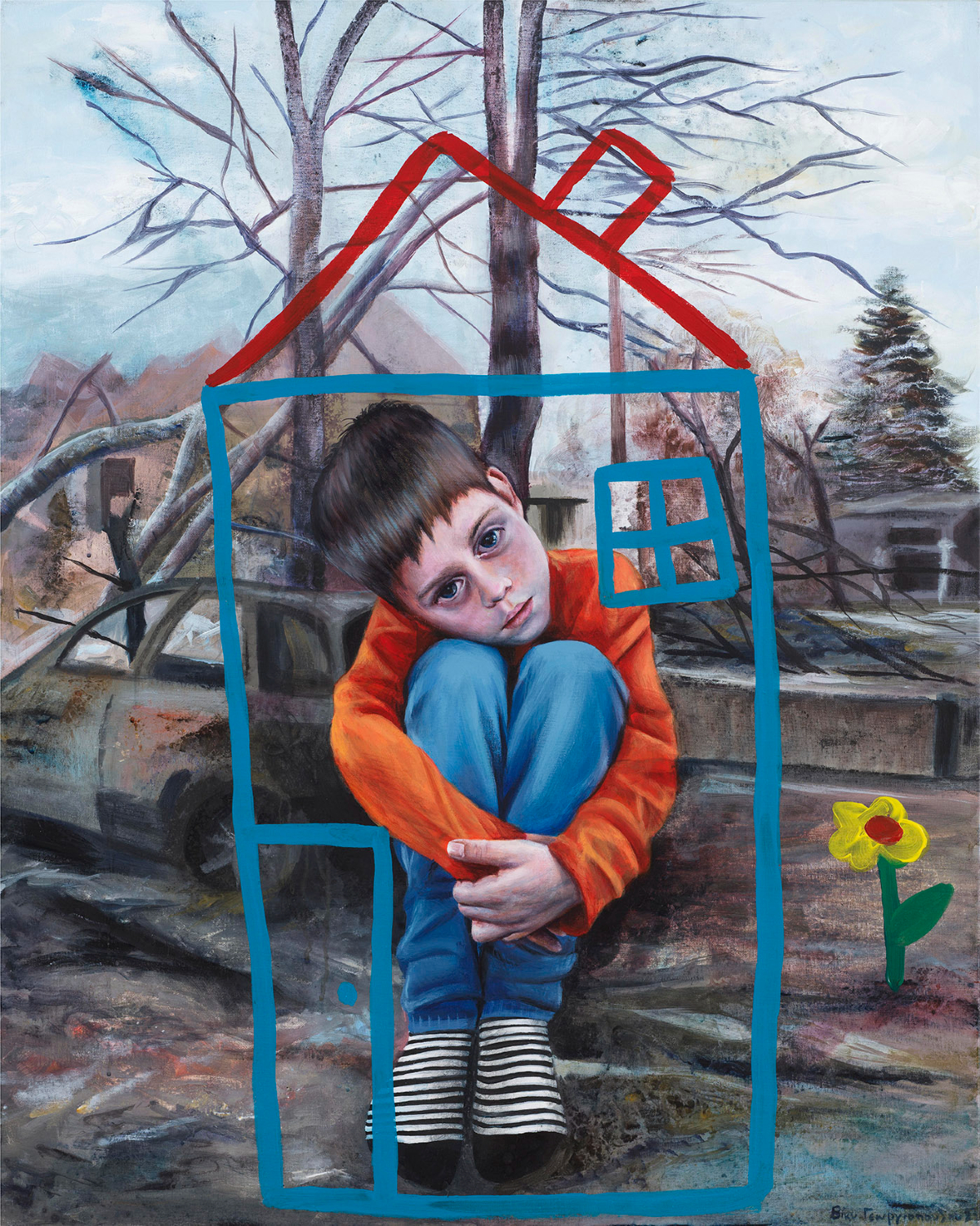 Οι μορφές που εμφανίζονται στους πίνακες κουβαλούν τα σημάδια της εποχής τους. Ο πόλεμος, η βία, η πείνα και η αναγκαστική μετανάστευση λειτουργούν ως αόρατες δυνάμεις που διαπερνούν τα σώματα και τις ιστορίες τους. Παιδιά και ηλικιωμένοι ,οι πιο ευάλωτες ηλικιακές ομάδες, εμφανίζονται παγιδευμένοι ανάμεσα στην ανάγκη για προστασία και στην αδιαφορία ενός κόσμου που κινείται με ταχύτητα και σκληρότητα.