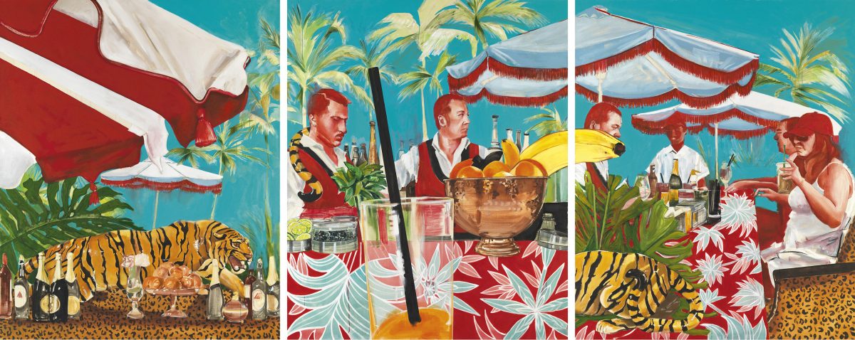 Στο εισαγωγικό σημείωμα του δίγλωσσου καταλόγου της έκθεσης, που υπογράφει ο Ιστορικός Τέχνης και επιμελητής Χριστόφορος Μαρίνος διαβάζουμε για το έργο της καλλιτέχνιδας: «Ονειροπόληση, ειρωνεία, αλλά και μια αδιόρατη αύρα μελαγχολίας χαρακτηρίζουν τους πρωταγωνιστές στους πίνακες της Στέλλας Καπεζάνου και κατ’ επέκταση την ίδια τη ζωγραφική της» και προσθέτει «Από τους πίνακες αυτούς παρελαύνει κόσμος που παραθερίζει, που το όνειρό του μοιάζει να είναι οι μόνιμες διακοπές, μια διαρκής κατάσταση αναψυχής. Συνταξιούχοι, wannabe κατακτητές, ζευγαράκια, πετσέτες θαλάσσης, αντηλιακά και φουλάρια Hermès γίνονται ένα με τα φυλλώματα, τους φοίνικες και τους γλάρους. Συχνά οι παραθεριστές της Καπεζάνου απεικονίζονται πίσω ή μέσα από κάθετες λωρίδες χρώματος, που θα μπορούσαν όμως να είναι και μπάρες φυλακής, σύμβολα του εγκλεισμού τους σε έναν πλαστό-κατασκευασμένο παράδεισο που εξισώνει τα πάντα και τους πάντες. Και φυσικά, ένας τέτοιος κόσμος δεν θα μπορούσε παρά να φέρει μέσα του αναγνωρίσιμα μοτίβα ή ίχνη από έργα σύγχρονης τέχνης, όπως τα λουλούδια του Warhol και οι βούλες του Hirst».