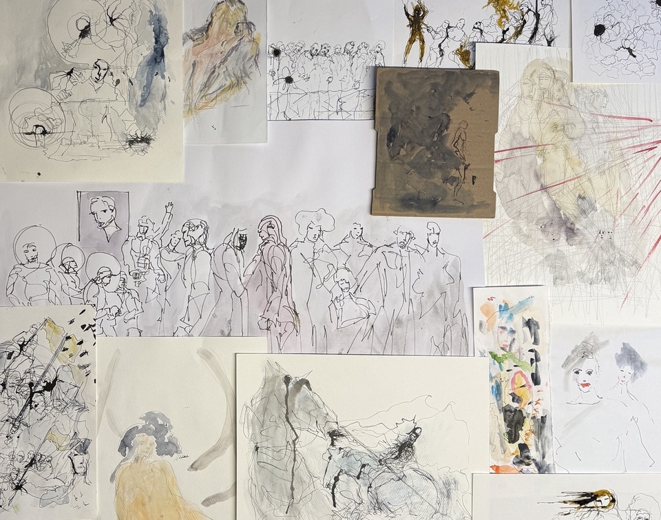 Σε άλλες περιπτώσεις, μορφές και σύμβολα κινούνται σε έναν ατέρμονο χωροχρόνο, σαν μικρές νησίδες ύπαρξης μέσα σε έναν κόσμο αποσπασματικών σχέσεων. Η ανθρώπινη μορφή άλλοτε είναι ευδιάκριτη και άλλοτε απλά υπονοείται, σχολιάζοντας τη σύγχρονη εμπειρία της απομόνωσης και της εύθραυστης συγκρότησης της ταυτότητας.