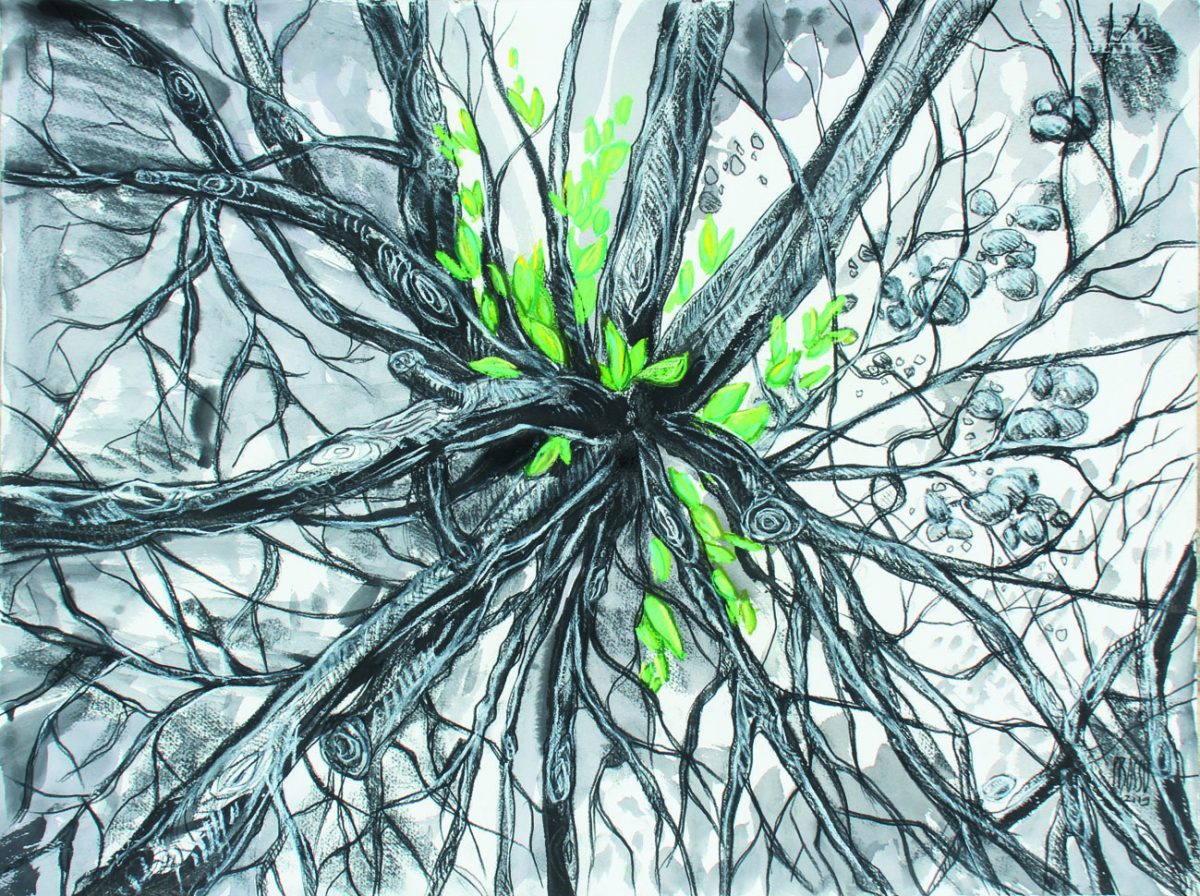 Αίσθηση προκαλεί η εγκατάσταση που δίνει χρώμα και πνοή ζωής με καμένα δέντρα από το Μάτι και που δεν θυμίζουν σε τίποτε καμένη γη. Ο γλύπτης που ζει από τη δεκαετία του 1970 στο Νέο Βουτζά συμμετέχει με ένα γλυπτό που το ονομάζει «με πολιτιστική διάθεση». Το εργαστήριό του καταστράφηκε ολοσχερώς και δεν μπορεί να δημιουργήσει νέα γλυπτά.