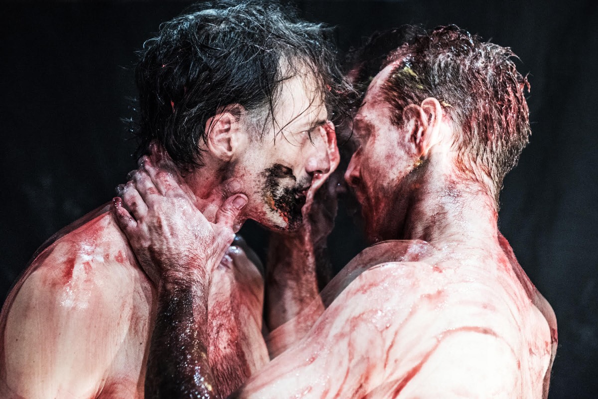 Αυτά τα δύο πρόσωπα για τα οποία γράφτηκε ο Αιαυτός το 2014 γλίστρησαν απ’ την μπίλια, χάντρα, τη γη και τώρα που τους βλέπουμε είναι στο ενδιάμεσο. Ενδιάμεσο ποιων πραγμάτων; Το φως που τους λούζει είναι φως φεγγαριού, χαραμάδας, φως και τόπος δαιμονόπληκτος δηλαδή. Δηλαδή κι από το κενό μπορεί να χυθεί αίμα και να στάξει μαύρο. Τι είναι αυτό το μαύρο δεν μπορώ να πω, δεν ξέρω. Το ξέρω αυτό το μαύρο. Πάντως αυτοί οι δύο (που είναι στο ενδιάμεσο, όπως είπαμε, με τα φανταστικά τους ρούχα ραμμένα στο χέρι πόντο πόντο πάνω τους, όπως δεν είπαμε) προσπαθούν αυτή την μπίλια, χάντρα, τη γη να την κάνουν κόσμο, κόσμημα προσφέροντάς της (ενώ όλα μέσα της και πάνω της περιστρέφονται και κινούνται διαολεμένα) κάτι που είναι ακίνητο, ακλόνητο, που στέκει.