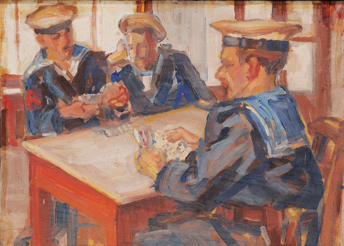 Στην πρώτη ενότητα αξιοποιείται κυρίως υλικό από τις συλλογές του Ιδρύματος, ένα σύνολο σχεδίων του Σπύρου Παπαλουκά που απέκτησε σχετικά πρόσφατα το Τελλόγλειο, επίσης έργα άλλων καλλιτεχνών στις συλλογές του (Βαλσαμάκη, Μηνά Αβραμίδη, Χαλεπά-Κατσάτου κ.ά.), δάνεια από μουσεία και συλλογές (και έργα του Περικλή Βυζάντιου από τη μικρασιατική εκστρατεία), καθώς και φωτογραφικό υλικό του Αρχείου Στρατή Δούκα στο Α.Π.Θ.