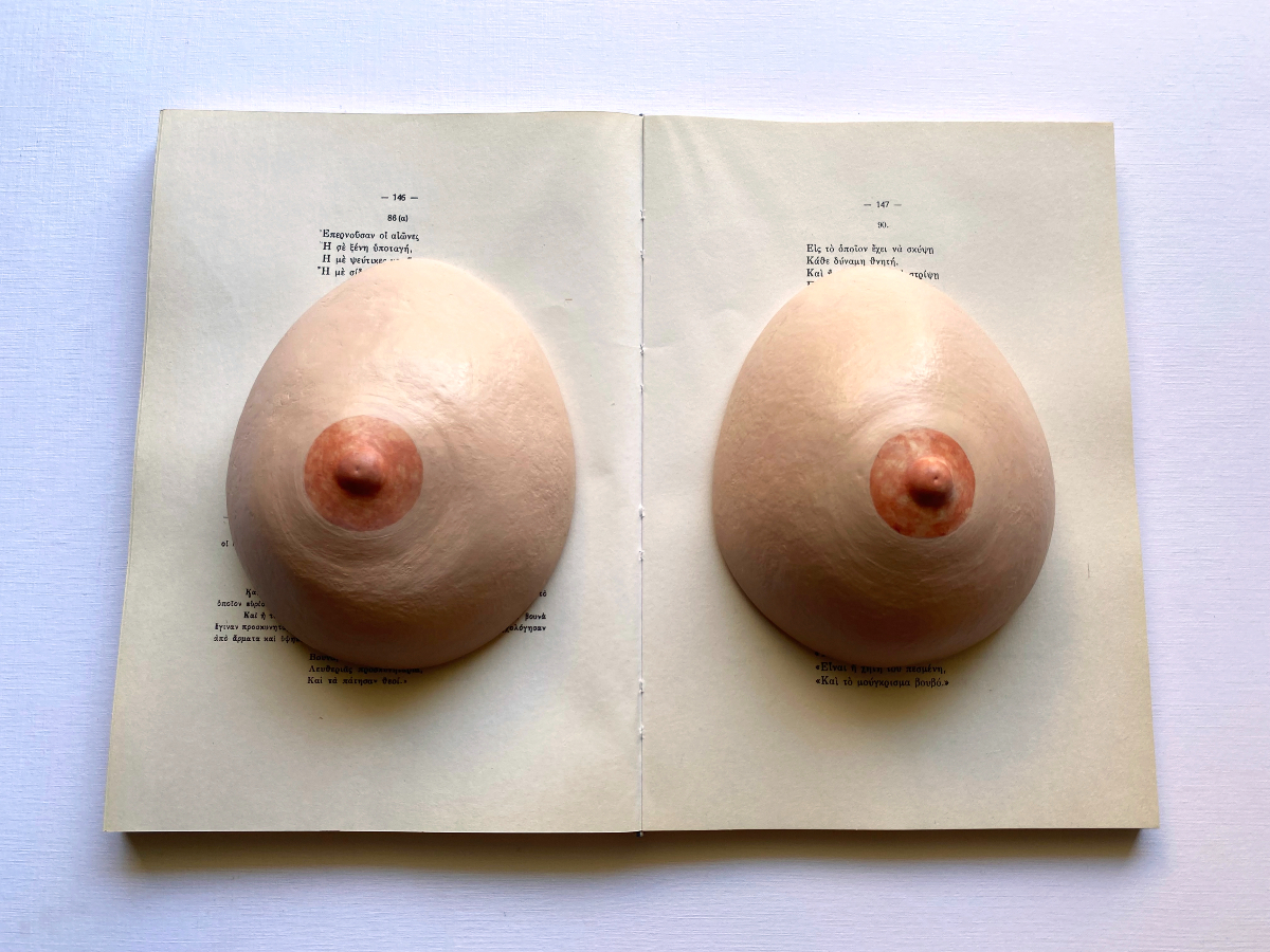 Δύο ρεαλιστικά γυναικεία στήθη (κεραμικά βαρίδια) βρίσκονται τοποθετημένα επάνω στο σηµειωματάριο στο γραφείο του Κατακουζηνού, ανακαλώντας το έργο του Marcel Duchamp Prière de Toucher. Πρόκειται για ένα σουρεαλιστικό αντικείμενο φαντασίωσης και πόθου µε τίτλο Please touch / Boobs on Books (2022). Περισσότερο µε διαισθητική παρά µε σεξουαλική χροιά, το αντικείμενο προσκαλεί τον θεατή να χαϊδέψει το στήθος, προκαλώντας έτσι πάθος και πρόκληση. Τα έργα της Μήτρεντσε διερευνούν τις επιρροές της ψυχανάλυσης στον σουρεαλισμό, ο οποίος χρησιμοποίησε τις θεωρίες της για τις ορμές και τα όνειρα µε πολλούς διαφορετικούς τρόπους – μερικές φορές αυτό γίνεται και µέσω «παραγωγικών παρανοήσεων». Μέσα από θραύσματα αρχείων η καλλιτέχνις απαντά σε ψυχαναλυτικές και προσωπικές ιστορίες, προτείνοντας νέες αφηγήσεις για την κατανόηση του παρελθόντος.