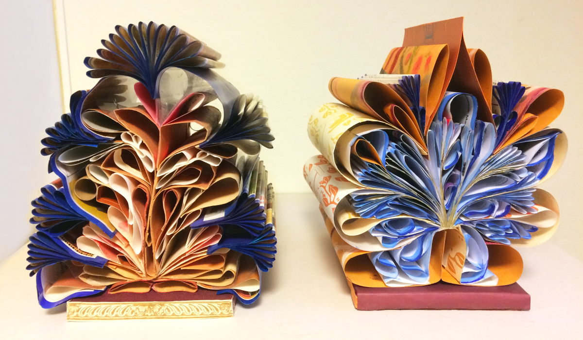 Κεντρική φωτογραφία θέματος: ΑF – BookScape VII, 2021,, εξώφυλλα βιβλίων, κορδέλες, ξύλο, 120 x 140 εκ (λεπτομέρεια έργου)