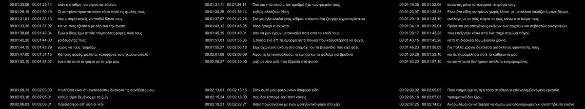 Τα ιδιοποιημένα κείμενα προβάλλουν εδώ σαν ένα νοητικό δέντρο, όπου διαφορετικές σκέψεις και φωνές σμίγουν και ενοποιούνται σχηματίζοντας διακλαδώσεις, κορμούς και ριζώματα. Σύμφωνα με τον καλλιτέχνη, οι χρονικές σημάνσεις που συνοδεύουν τα κείμενα-κυλιόμενους τίτλους τέλους, ενώ δεν περιέχουν τον ήχο της φωνής, ωστόσο αναφέρονται άμεσα σε συγκεκριμένες φωνές που έχουν υπάρξει. Αποτελούν οπτικές αντανακλάσεις ακουστικών γεγονότων, ίχνη που μέσα στη σιωπή ενεργοποιούν την προσδοκία του ήχου.