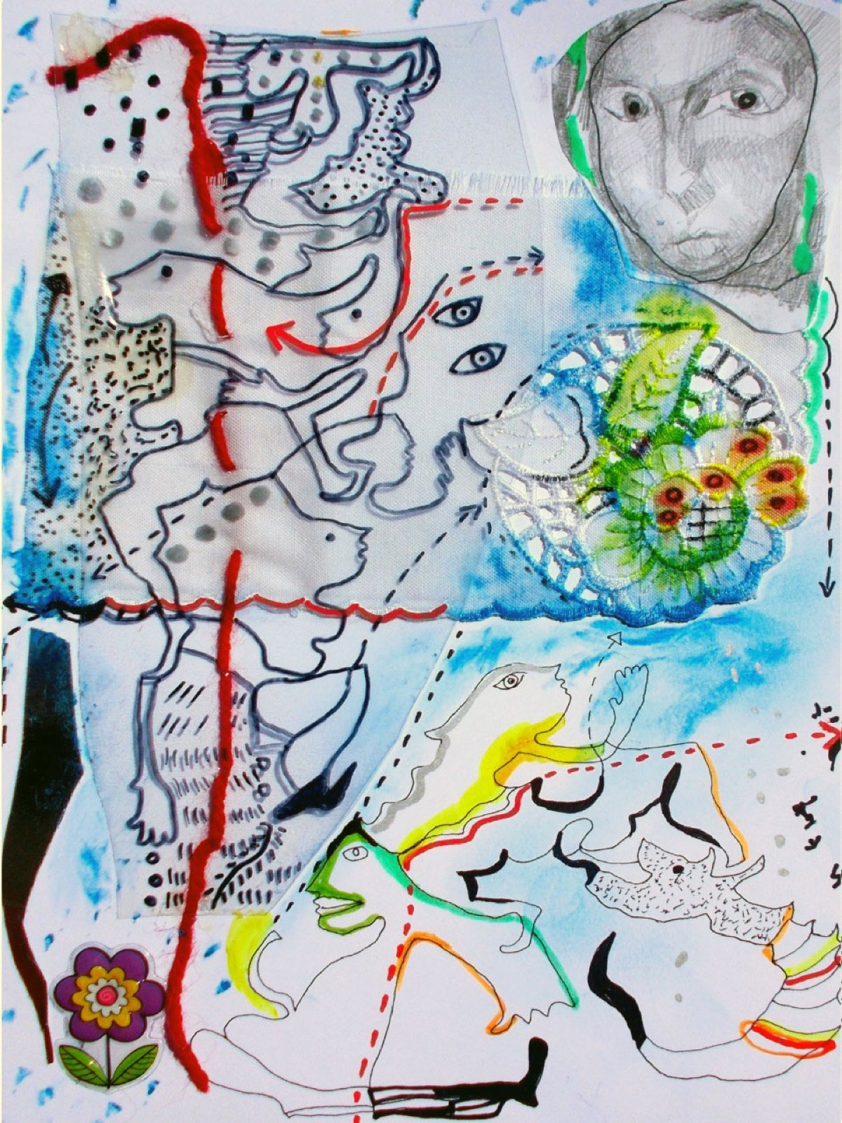 Η Ιάνθη Αγγελίογλου, μέσα από το «Σημειωματάριο» που έφτιαξε το 2010 σε αργαλειό, δημιούργησε ένα ψυχογράφημα- καθρέφτη του βαθύτερου εαυτού. Αναμνήσεις από το «παλιό μας σπίτι» ανασύρει η Άντα Αναστασέα και επανασυνθέτει, ενώνοντας βελούδα σε διαφορετικά χρώματα, λαμπερά που μέσα τους εμπεριέχουν, τα έσω κάθε οίκου. Η Ειρήνη Βαζούκου επαναδιαπραγματεύεται το σώμα «της γυναίκας τη διπλανής πόρτας» αφαιρώντας και συρράπτοντας, σημαντικά μέλη του σώματος από το στήθος μέχρι την καισαρική τομή, ενώνοντας κομμάτια-βιώματα και εμπειρίες- σε μία διαδρομή κι έναν αγώνα για ζωή…