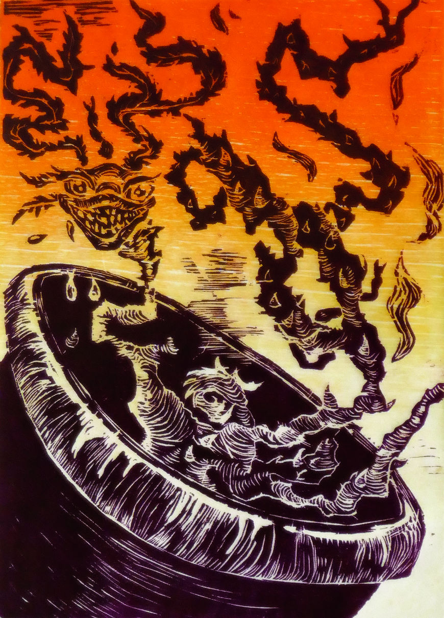 Η αντίσταση του υλικού από το οποίο προέρχεται η μήτρα εκτύπωσης, η ανάγκη της ακρίβειας του σχεδίου και της σύνθεσης, η απαίτηση της οικονομίας υλικών και χρόνου οδηγούν στην πειθαρχία των φοιτητών που με τη σειρά τους δαμάζουν σιγά-σιγά το υλικό τους.